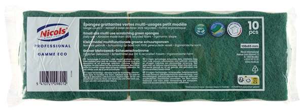 Éponges grattantes vertes multi-usagesGamme ÉCONOMIQUEPetit modèle x10Remplace le code Hedis 538046 (Réf.frs N511123)