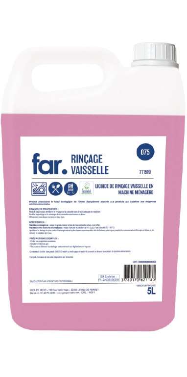 Produit liquide pour améliorer le rinçage de la vaisselle lors de son passage en machine.Facilite l’égouttage et le séchage de la vaisselle sans laisser de trace.Efficace en eau douce comme en eau dure