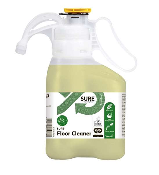 SURE Floor Cleaner SmartDose® fait partie d’une gamme formulée à base de plantes, 100% biodégradable pour un nettoyage quotidien. SURE Floor Cleaner est détergent quotidien peu moussant recommandé pour tous les sols durs résistant à l’eau.